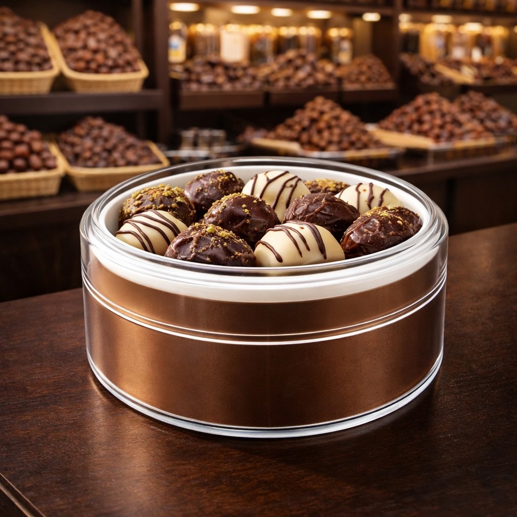Suitable for hypermarkets, supermarkets, bakeries, sweet stores, candy shops, confectionery outlets, and gift sections, this packaging highlights freshness, quality, and indulgence while attracting customer attention.