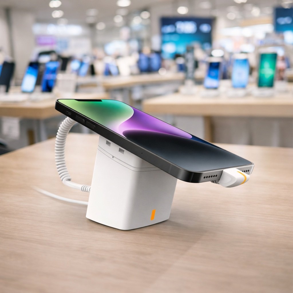 Perfect for supermarkets, mobile phone shops, electronics stores, telecom showrooms, and duty-free outlets, these anti-theft displays combine strong security, sleek design, and easy installation to improve both product protection and sales engagement.