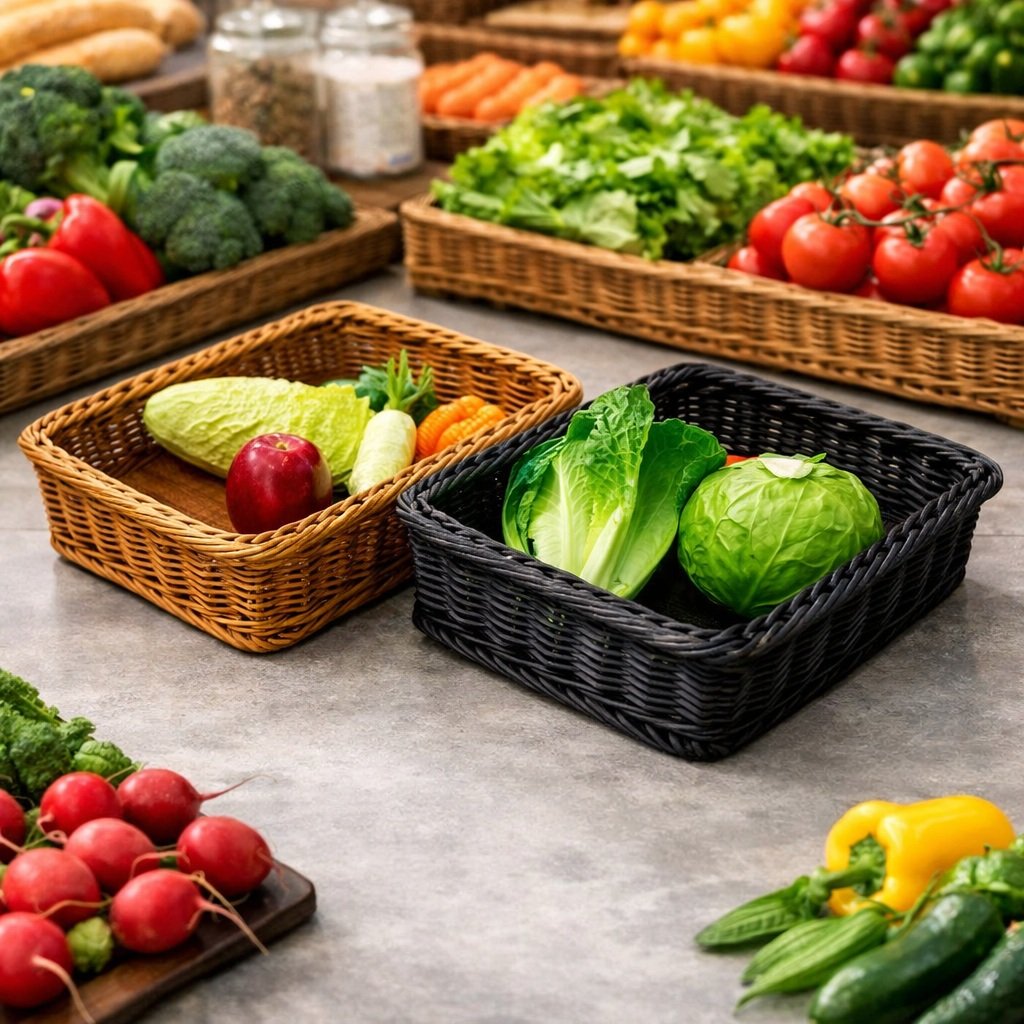 Ideal for hypermarkets, supermarkets, bakeries, grocery stores, organic shops, and specialty retail outlets, rattan baskets combine durability, functionality, and aesthetic charm for everyday retail use.