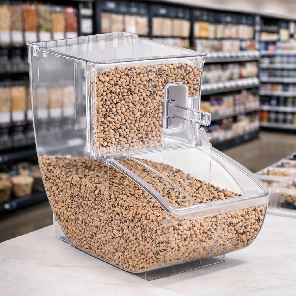 Ideal for hypermarkets, supermarkets, bakeries, sweet stores, candy shops, nut stores, and bulk food sections, scoop bins enhance product presentation and encourage impulse purchases while maintaining hygiene standards.
